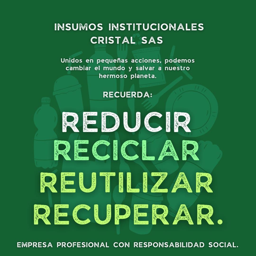Es nuestro compromiso generar un impacto ambiental y social por lo tanto Insumos institucionales cristal s.a.s maneja materias primas biodegradables reutilizándolas para recuperar su capacidad energética y así generar un desarrollo sostenible.